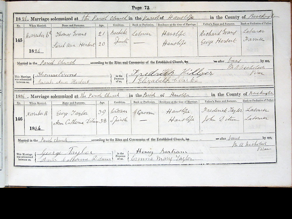 1886. Marriage solemnized the Parish Church in the Parish of Hanslope in the County of Buckingham