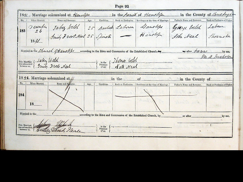 1891. Marriage solemnized the Parish Church in the Parish of Hanslope in the County of Buckingham
