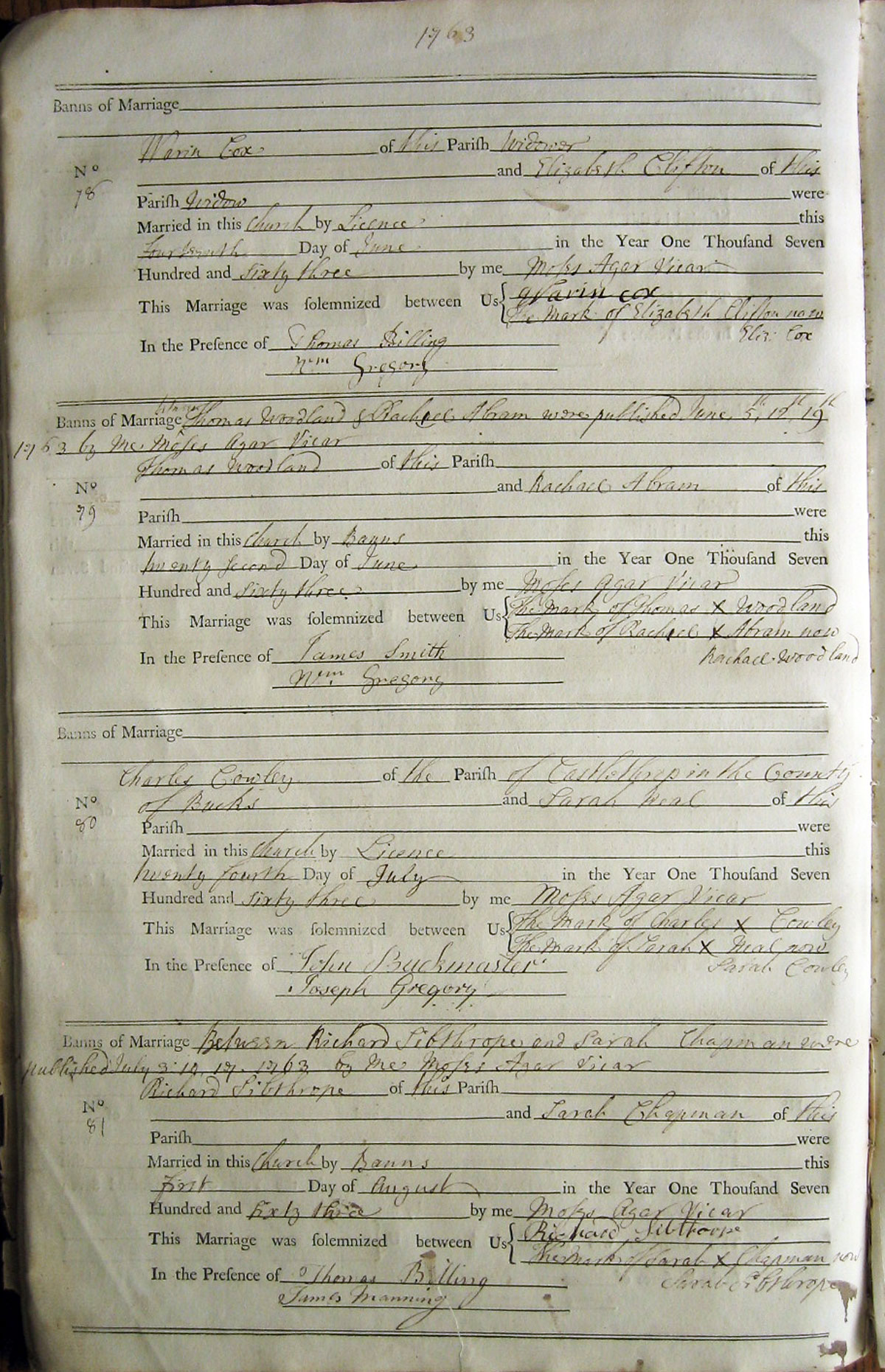 this marriage was solemnized between Us signed Richard Sibthorpe