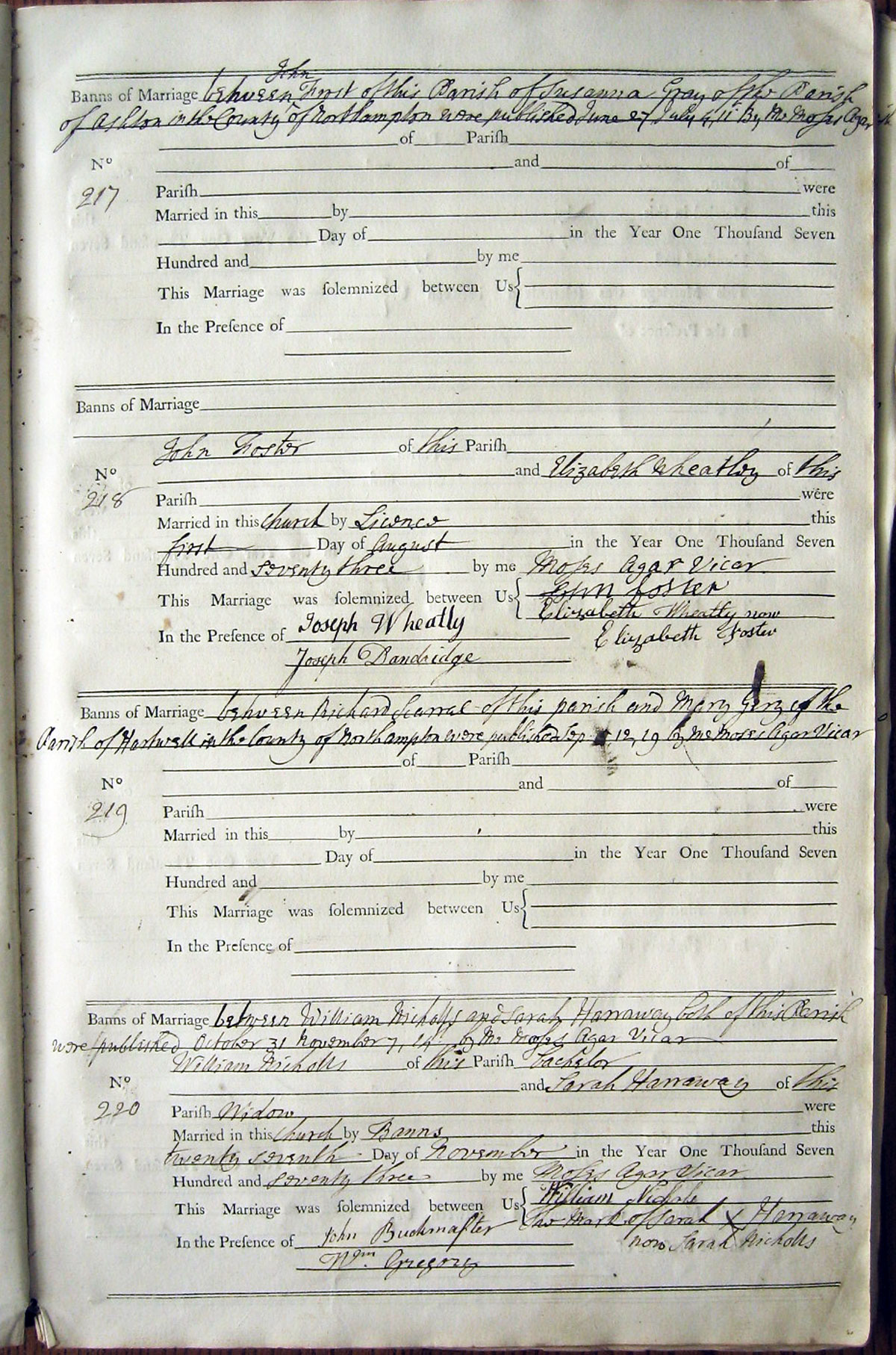 Banns of Marriage between Richard Scarral