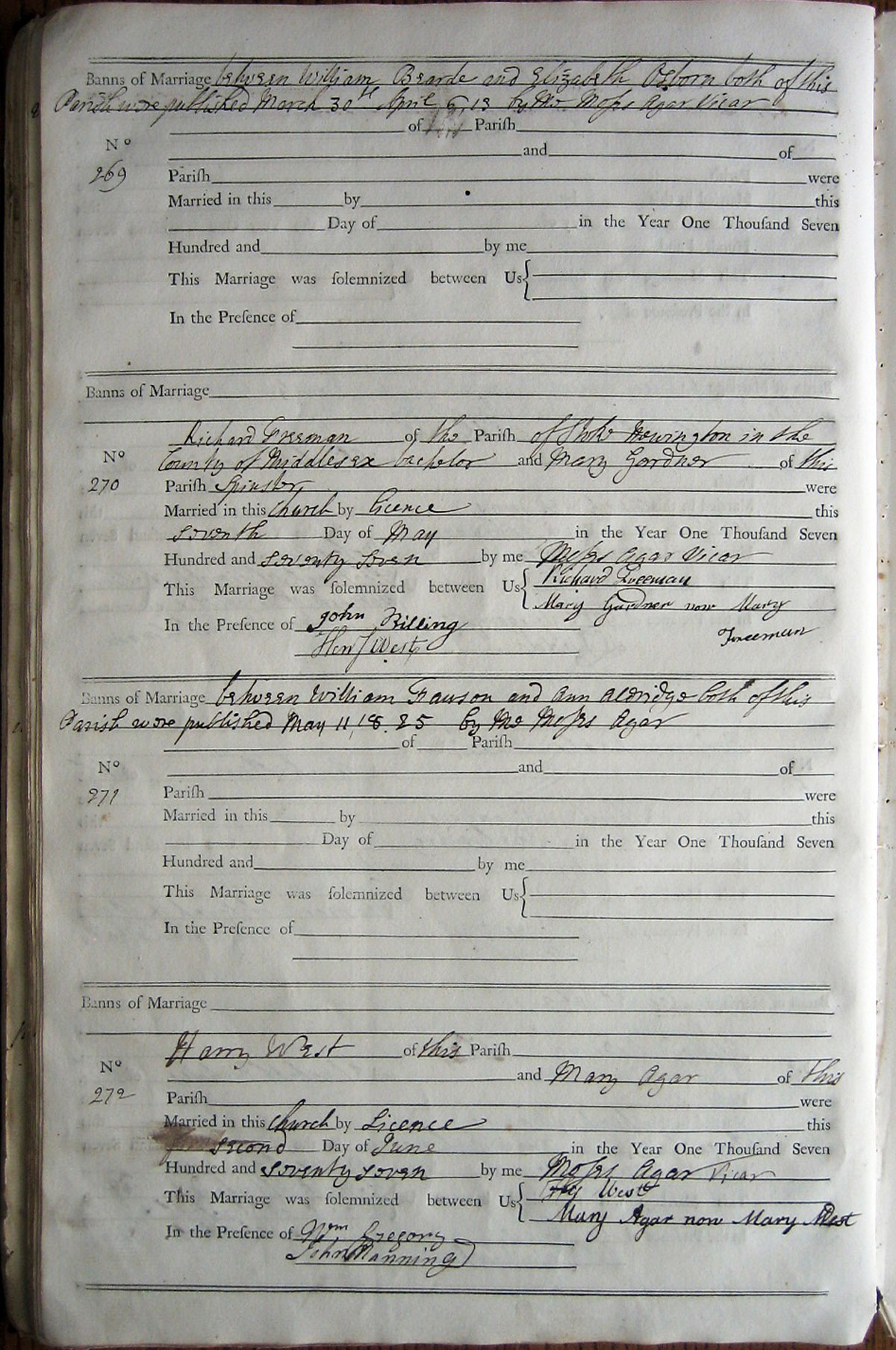 Banns of Marriage between William Fawson