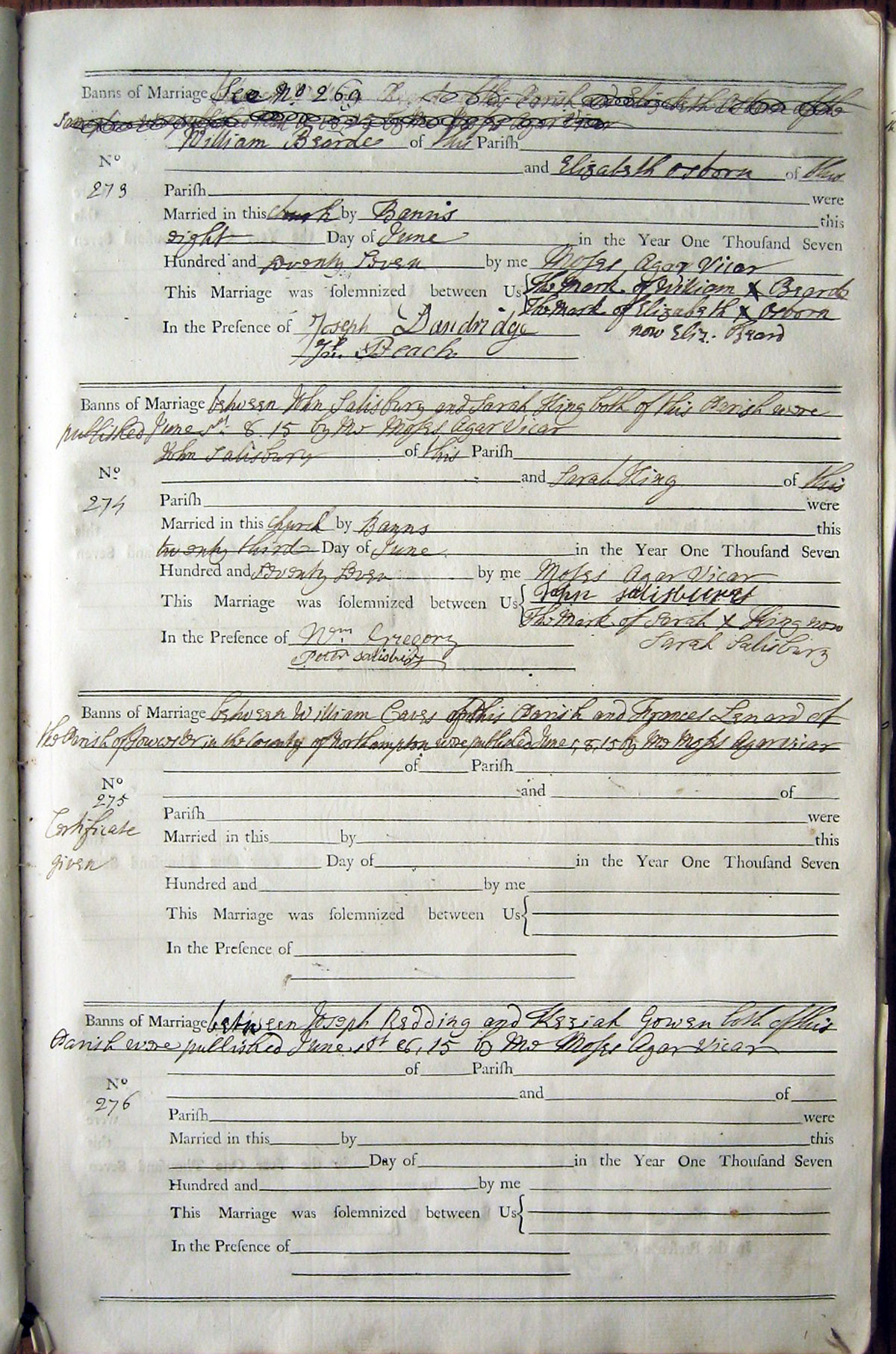 See banns entry 269; witness signed 'Jon' |