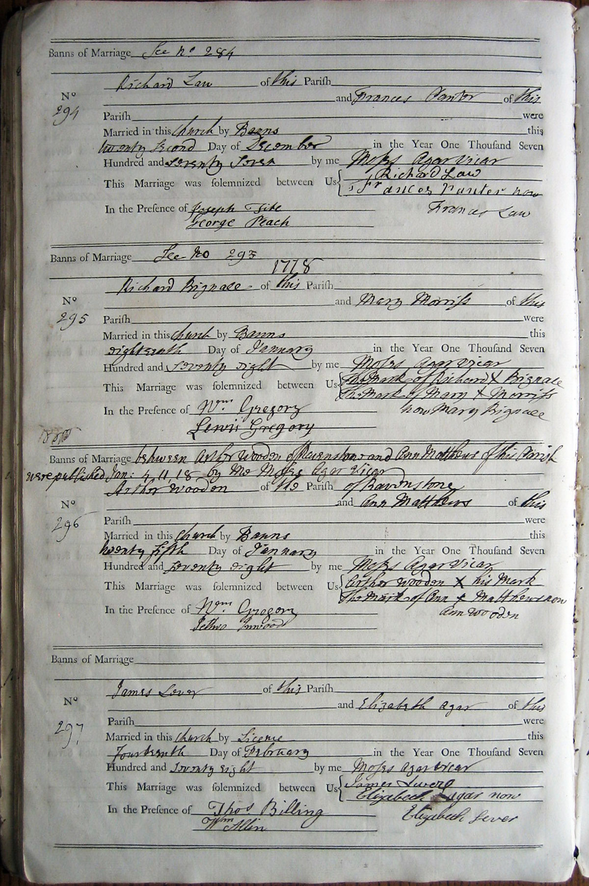 Transcriber's note: See banns entry 284