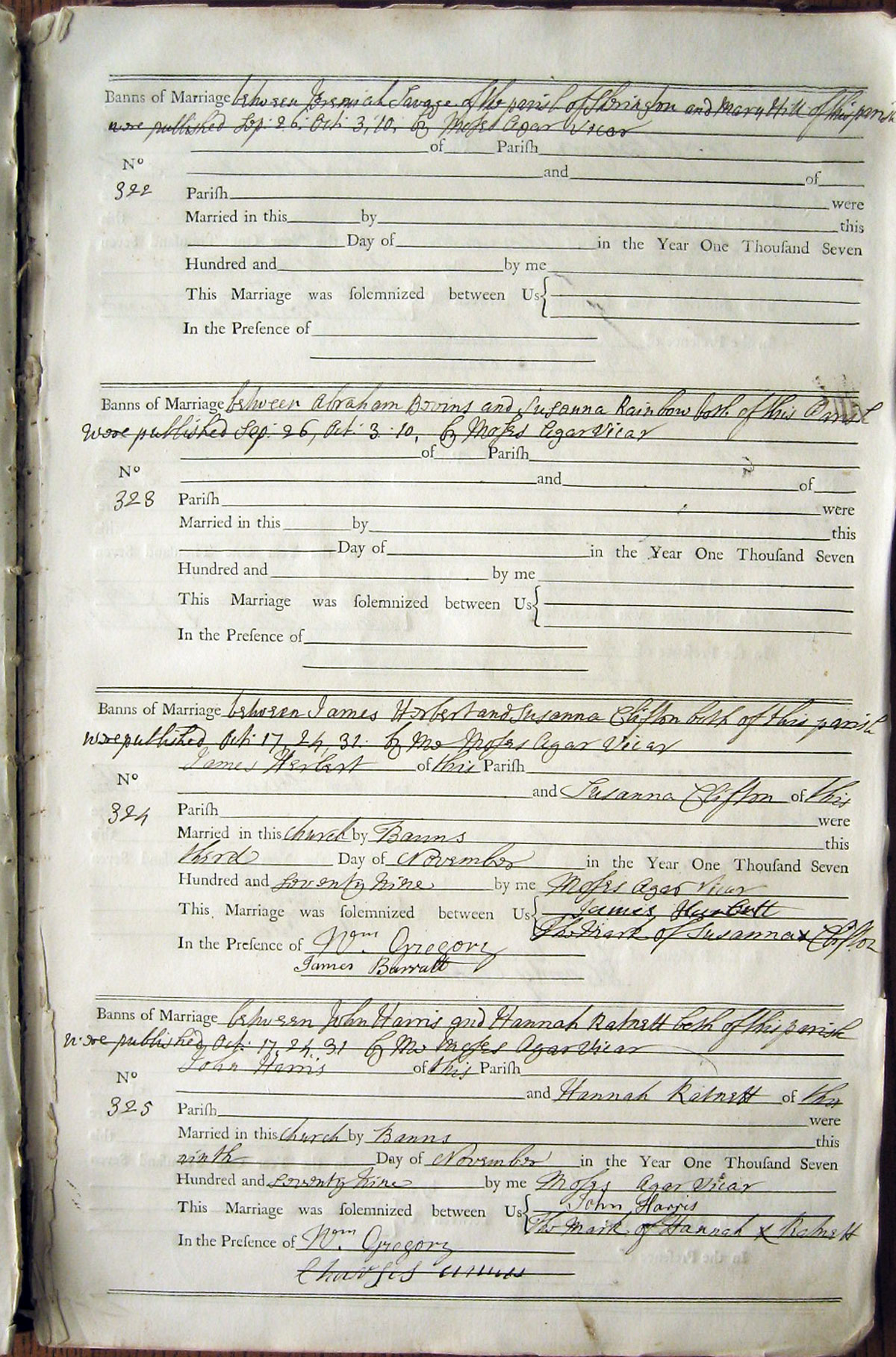 Banns of Marriage between Jeremiah Savage