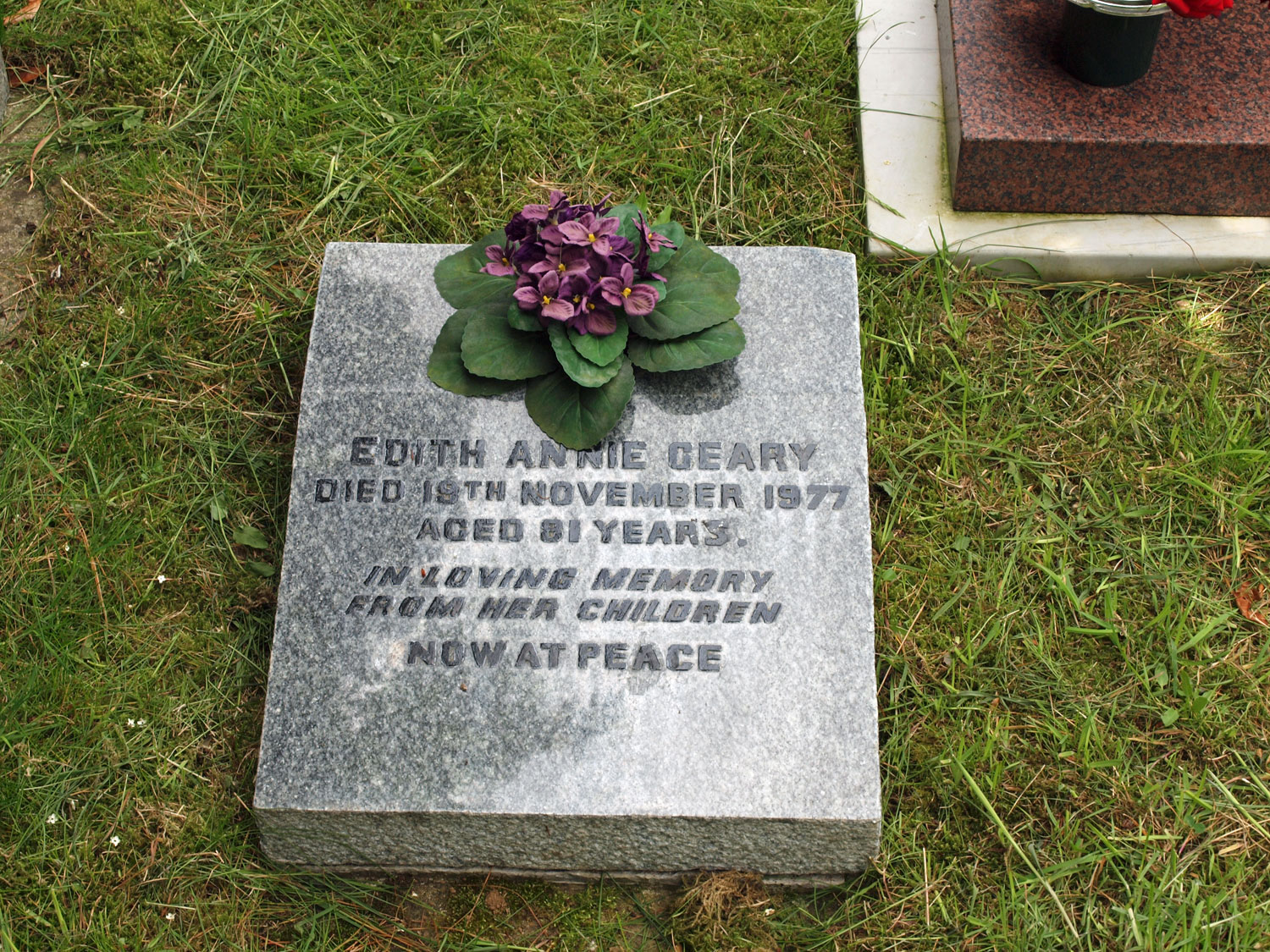 The following inscription mentions Edith Annie Geary