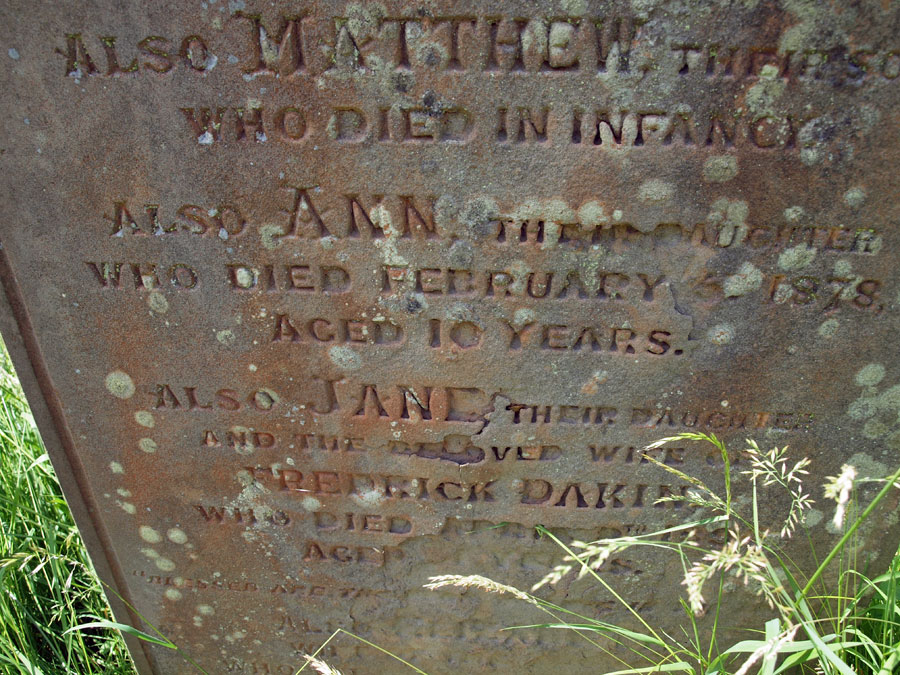 The following inscription mentions Jane Dakin