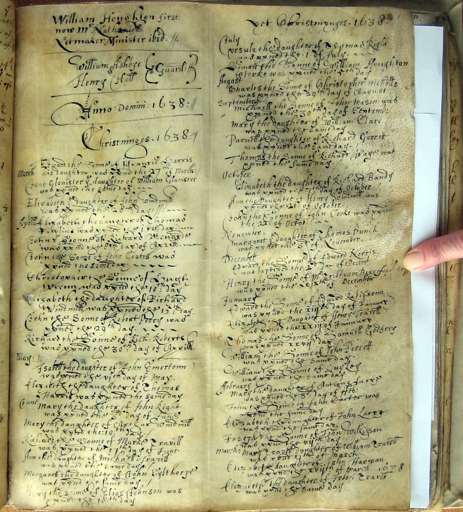 There are 2 columns of information on the original page. The columns are combined above, with the second column running on beneath the first, separated by two horizontal lines. The years above are according to the old style calendar in which the year began on 25 March, Lady Day. The entries above for the period January - March 1638 are for 1639 according to the modern calendar. |