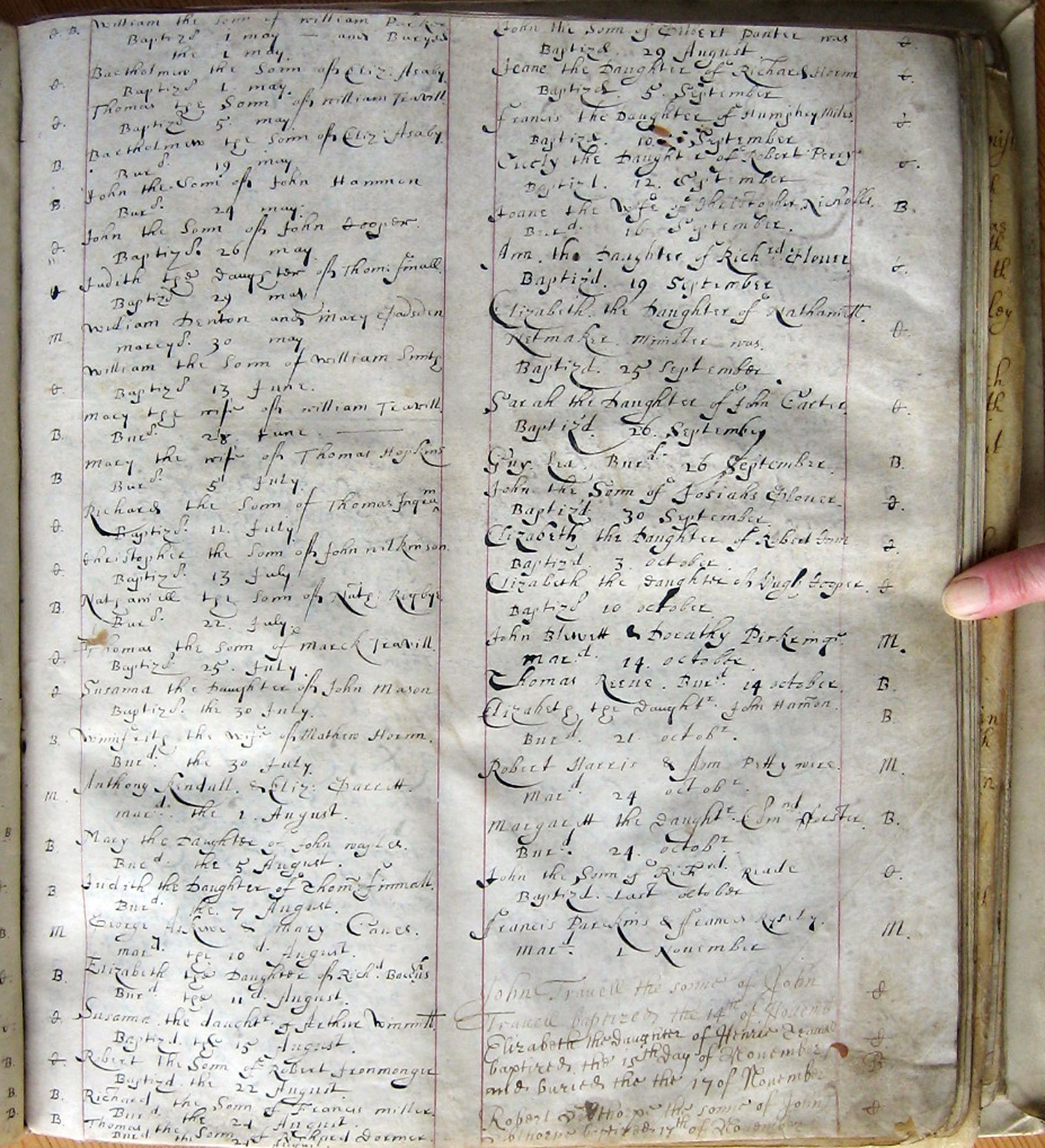 | The following is a transcription of page 106 of the Church Register for 1571 to 1732 of St. James The Great, Hanslope |