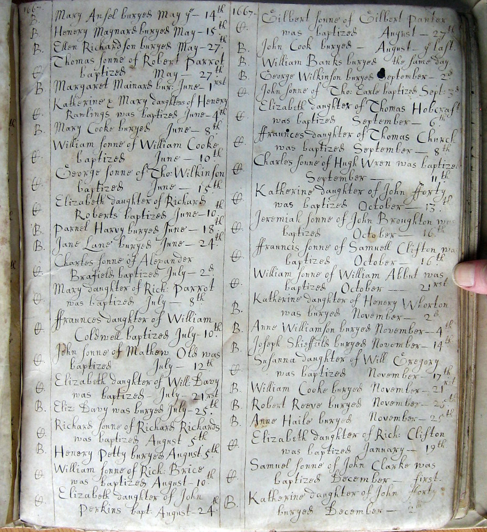 Elizabeth Daughter of Richard Clifton baptised . . . . January 19