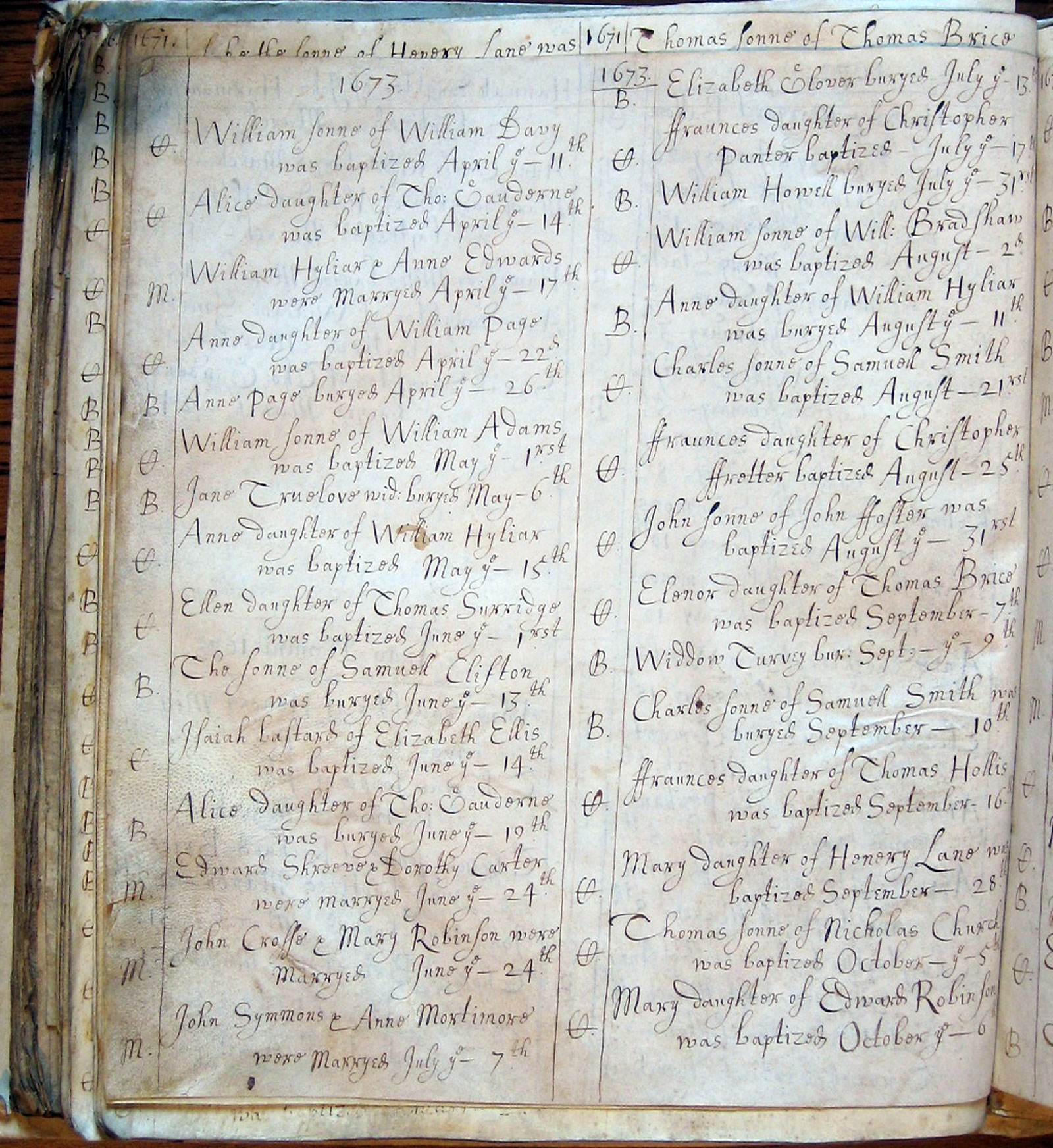 Mary Daughter of Henery Lane baptised . . . . September 28