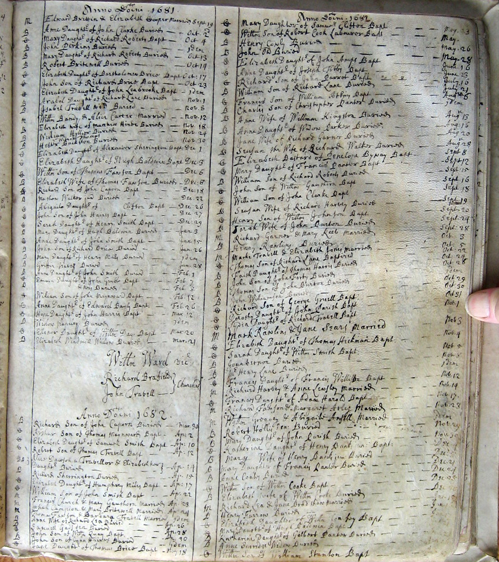 The years above are according to the old style calendar in which the year began on 25 March, Lady Day.  The entries above for the period January - March 1682 are for 1683 according to the modern calendar.