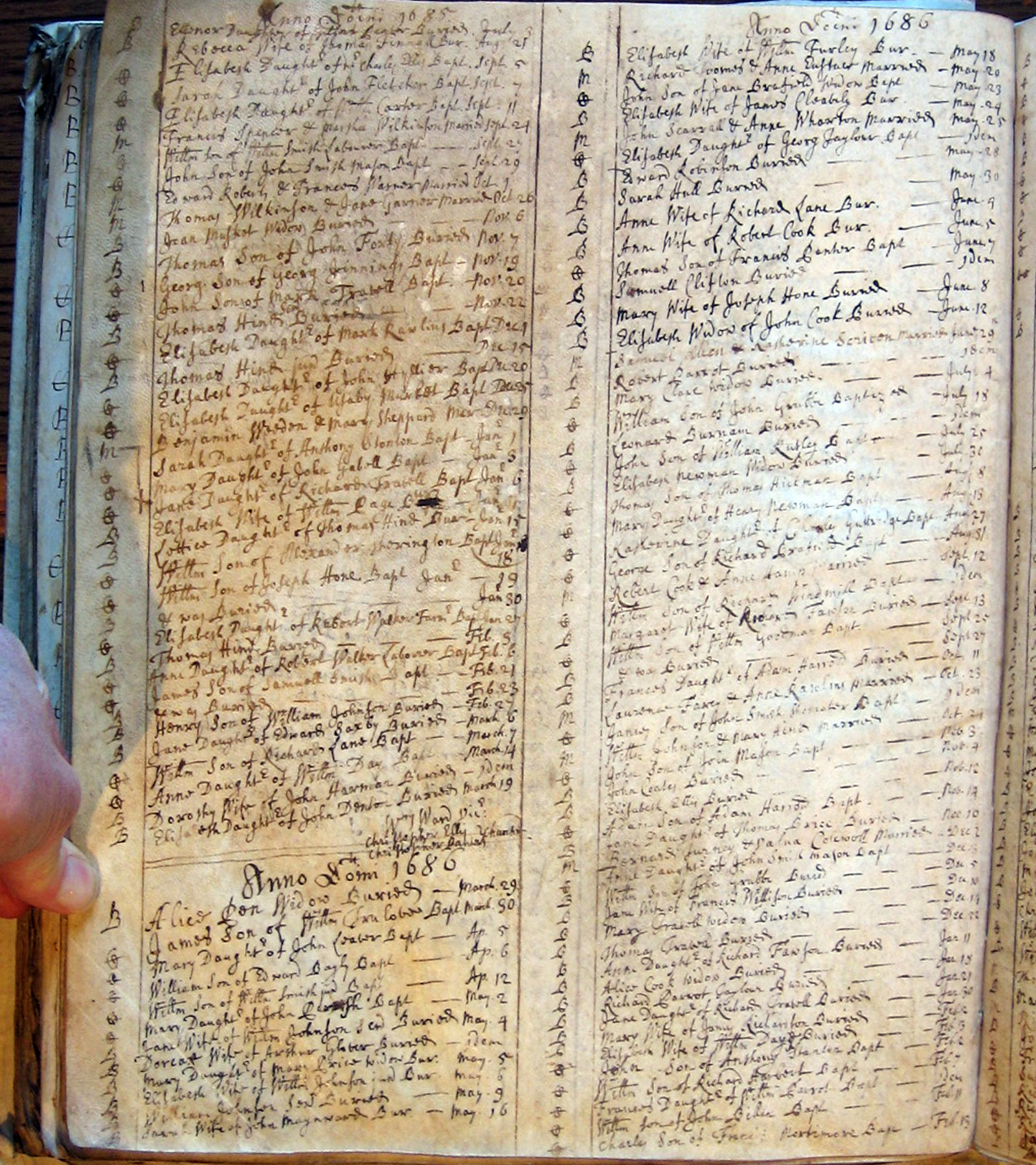 The years above are according to the old style calendar in which the year began on 25 March, Lady Day.  The entries above for the period January - March 1686 are for 1687 according to the modern calendar.