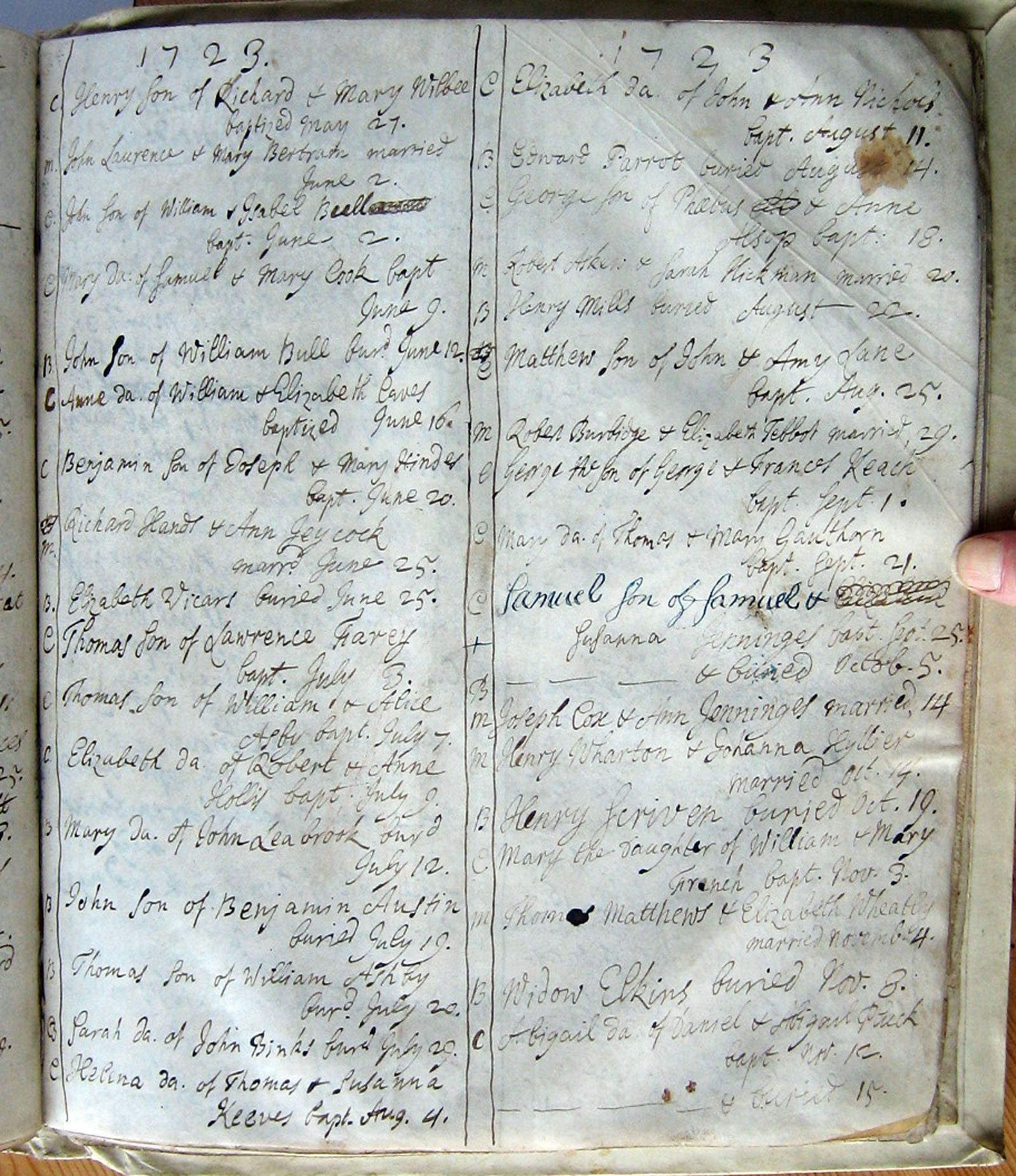 | The following is a transcription of page 224 of the Church Register for 1571 to 1732 of St. James The Great, Hanslope |