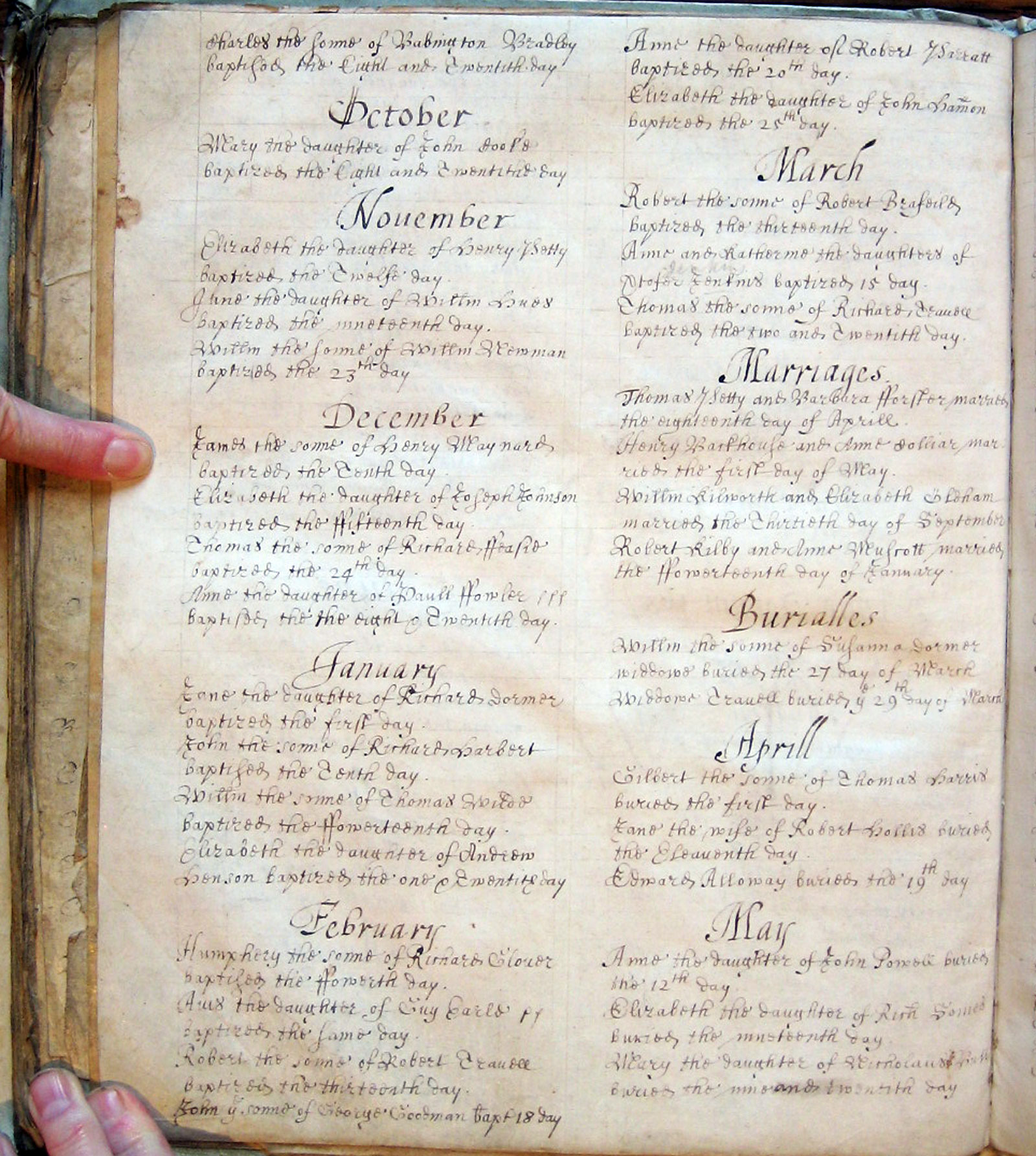 | The following is a transcription of page 97 of the Church Register for 1571 to 1732 of St. James The Great, Hanslope |