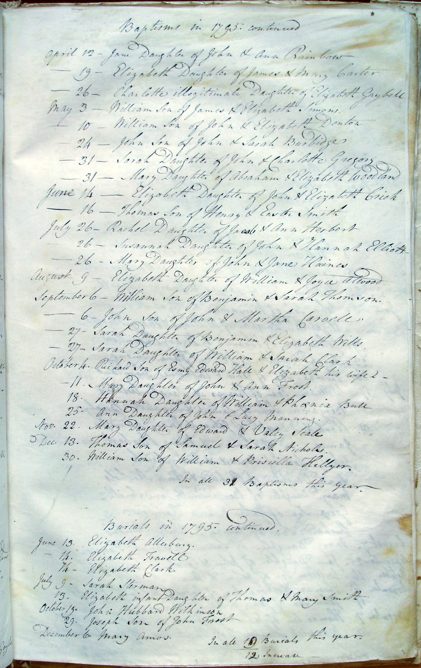 Burials in 1795 continued