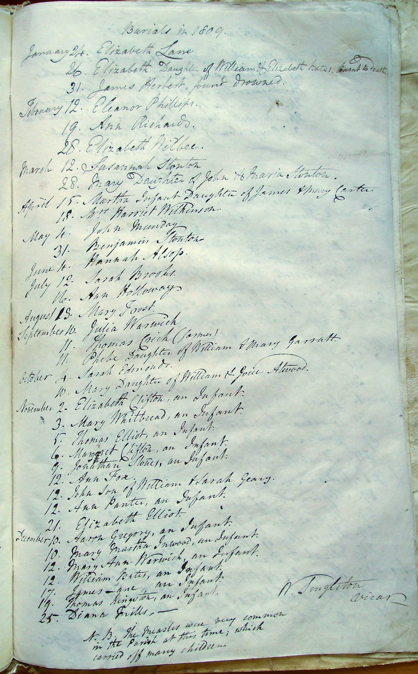 N.B. The measles were very common in the Parish at this time, which carried off many children |