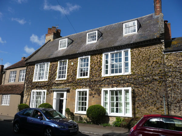 Courtney House Grade II Late C18 rebuilding of earlier house. Ashlar stone with floorband, steep pitched slate roof, stone coped gables. Brick stack at north end, three flat topped dormers. Dentilled eaves. Two storeys, 6 panel door left of centre, rectangular fanlight with margin glazing, panelled reveals and soffit, wooden doorcase with reeded pilasters panelled above capitals, simple cornice. Sash window on right, tripartite sash windows on each side, similar above with blank recess above door, all windows with plain stone architraves and keystones. Interior: Early C19 staircase, panelled doors, arches in entrance hall, chimney pieces and moulded plaster cornices.