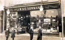 Please click the 'People' tab above to check out the people who resided in this property. . This property was once an inn or alehouse. For details see "The Old Inns of Olney" by Elizabeth Knight, published by Baracuda Books 1981 and available in the Olney library. The Red Lyon. More information on the history of these Market Place properties during the period 1800 to the 1950s is available by selecting one of the ODHS 'Market Place Tours on the 'ODHS HERITAGE TRAILS' header web page, as per the following link: https://www.mkheritage.org.uk/odhs/all-odhs-heritage-trails/ This ODHS website features a major article on the business of JW & E Sowmans. The article provides an insight into business from the late 1880's, when it was essentially an ironmongers, to the late 1930's, when it had extended into a comprehensive emporium, having added a radio shop, a garage, an agricultural machinery workshop and several other related businesses. A glimpse of the Olney Sowmans' family life is also provided through the provision of many family photographs. Click here for more about the Sowman family who lived in the vicinity from the 1880s to the 1960s. Listed building The building is listed with particulars as follows. Grade II LateCl8 altered. Stone, steep pitched slate roof with two large flat topped dormers with sash windows deep eaves with wooden cornice having pairs of shallow brackets. Two storeys, shop front to ground floor, three sash windows with keystones to first floor. |