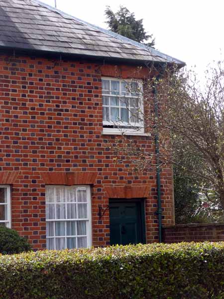 house has 6-panelled door, one sash window 4 panes wide 4 deep to ground